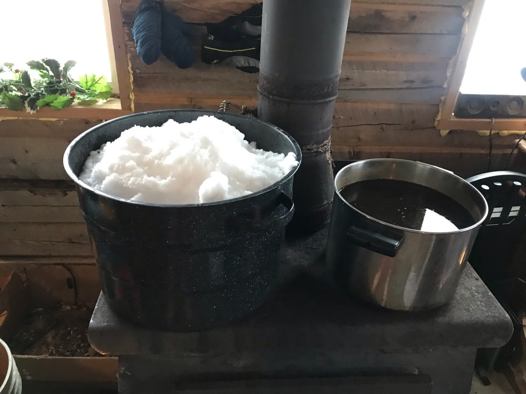 Saturday morning found us crawling wearily out of bed once more at 6. I packed Luis’ lunch , etc while he tended the wood stove and cleaned off the snowy suburban then we bundled up the still pajamaed (is that a word?) children and drove carefully out to where we’d parked the Subaru. Luis got out to clean it off, started it and managed to lock it with the keys inside! So, back to the house and back out again with the spare keys. Luis finally got left for his 24 hour fire department shift and it was probably 7:30 till the children and I got back to the house again. At 8 we had breakfast then I was cleaning up the kitchen and wondering why it just couldn’t stop snowing already (we had 10-12 inches of fresh powder at this point, thank God for a 4 wheel drive suburban and good snow tires!) when I heard a racket from the dog lot. I ran upstairs to get a good view and, sure enough, there was a dog loose, now a loose sled dog pretty much guarantees a dog fight so I threw on my winter gear and rushed out to apprehend the freed canine and managed to rig up a temporary fix that I intended to make more permanent later on. In the meantime I noticed just how deep the snow was and decided since I was already bundled up I may as well do some shoveling. So I settled my children (still in pajamas) on the couch with a video, and shoveled out in front of both doors, created trails to the shed where our animal food is stored and then on out to our goat shed since the next job on the agenda was the milking. By now it was a bit passed 10 which is milking time so I put away my shovel and proceeded with the milking, stopping only to catch and chain another dog who’d somehow gotten loose. Afterwards, with the children still happy I continued shoveling snow outside till the neighbor showed up on her four wheeler with a small plow blade on it and sweetly helped me by pushing open the lane, leaving me to just finish up with the parking area. Lunchtime arrived and then nap time, after naps I bundled the children up so we could go out to care for the dogs but once outside I realized it had snowed another 3-4 inches and showed no sign of stopping. I decided I should do some more shoveling to stay on top of it . After awhile I went inside for a drink and realized it was nearly supper time and I still hadn’t fed the dogs! I rushed to complete that chore, hurried in, made supper, and we finally ate a bit late. Now, all day long I had been bringing snow in to melt in my big stockpot on top of the wood stove and I had managed to fill two five gallon buckets, plus part of another, with snow water. The final stockpot full was to be hot water for baths and I realized rather belatedly that it wasn’t getting hot fast enough so I popped it on my regular stovetop’s quick boil burner to hurry it up. Meanwhile I made bars for Sunday fellowship meal and washed up all the dishes that had gotten neglected all day(and discovered that somehow I had forgotten to strain the goat milk and put it in the fridge, so it was all wasted…). The water for baths finally boiled, and I swept the floor, placed the tub close to the wood stove, and prepared the bath water for the children. It was now 8:30, and I was very tired. I swished them through as quickly as I could and got them off to bed so I could take my own bath. It was passed 10 till I was done, put everything away, and realized that I hadn’t fed and watered the goats for the night. I got dressed again, went and did that, came back in, put a ham in the crockpot to cook overnight for fellowship meal, and went to bed. I honestly have no idea what time it was by then…